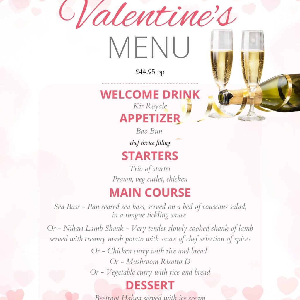 This experience is perfect for couples seeking affordable luxury, Indian food lovers, and foodies looking for a romantic Valentine’s dinner near London with elevated flavours and a warm, elegant setting.