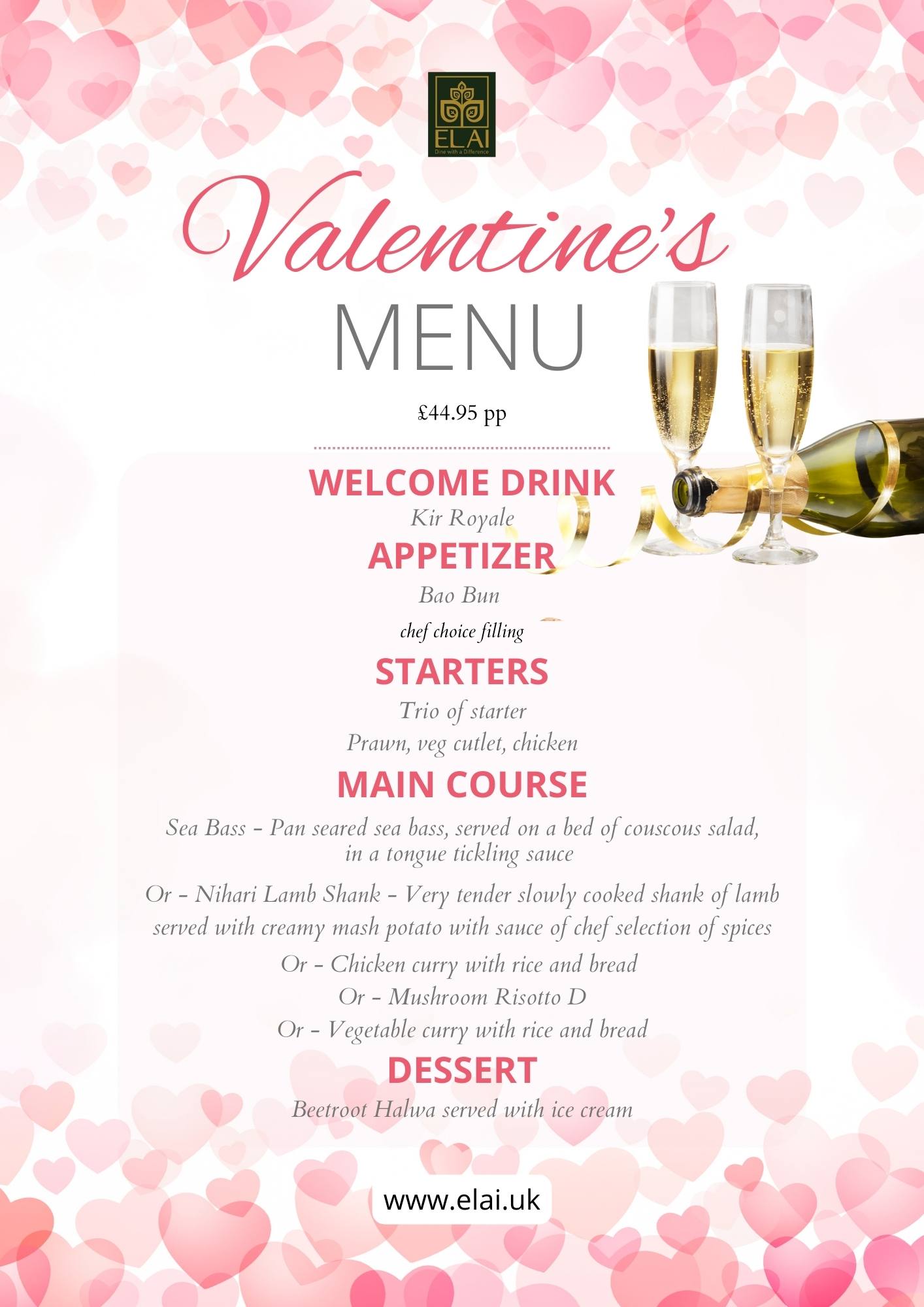 Elai Valentine's Day Menu